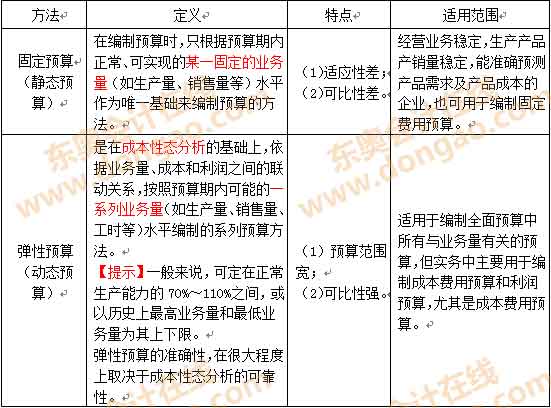 【知識(shí)點(diǎn)】:固定預(yù)算法與彈性預(yù)算法