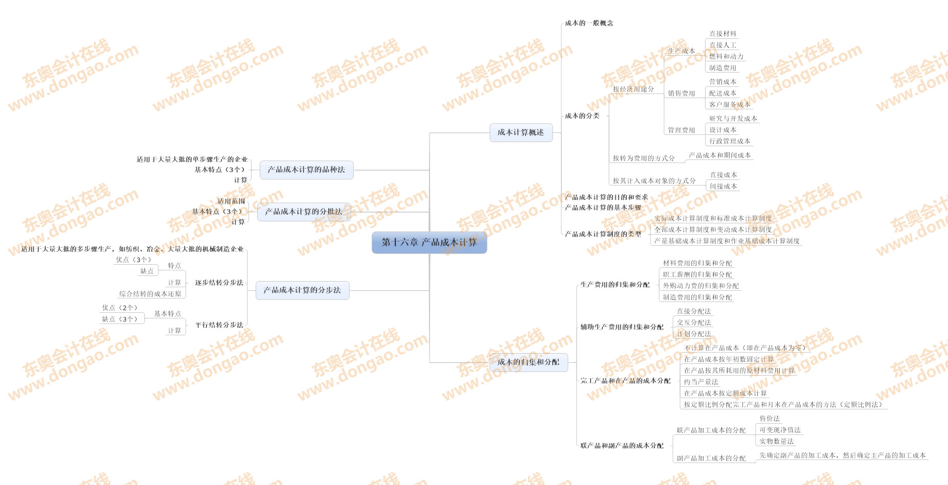 【東奧小編】2014年注冊(cè)會(huì)計(jì)師考試正式進(jìn)入基礎(chǔ)備考階段,注會(huì)知識(shí)點(diǎn)繁雜細(xì)碎,想要全面掌握注會(huì)各科目的知識(shí),需要科學(xué)高效的學(xué)習(xí)方法,思維導(dǎo)圖正是一種非常適合注會(huì)復(fù)習(xí)的學(xué)習(xí)方法,正確利用思維導(dǎo)圖,不僅能使自己積極進(jìn)行知識(shí)點(diǎn)總結(jié),形成清晰的思路,還能對(duì)知識(shí)點(diǎn)進(jìn)行快速查漏補(bǔ)缺。以下是2014注會(huì)《財(cái)務(wù)成本管理》第十六章產(chǎn)品成本計(jì)算思維導(dǎo)圖: