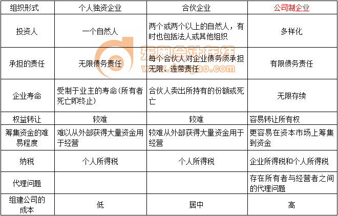 2015《財務(wù)成本管理》預(yù)習(xí)考點:企業(yè)的組織形式