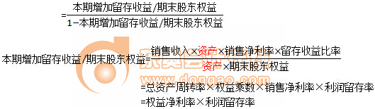 可持續(xù)增長(zhǎng)率=銷售凈利率×總資產(chǎn)周轉(zhuǎn)率×期初權(quán)益期末總資產(chǎn)乘數(shù)×收益留存率