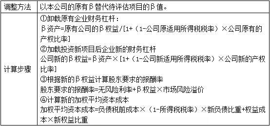 若目標(biāo)公司待評(píng)估項(xiàng)目經(jīng)營風(fēng)險(xiǎn)與公司原有經(jīng)營風(fēng)險(xiǎn)一致,但資本結(jié)構(gòu)與公司原有資本結(jié)構(gòu)不一致(滿足等風(fēng)險(xiǎn)假設(shè),但不滿足等資本結(jié)構(gòu)假設(shè))。
