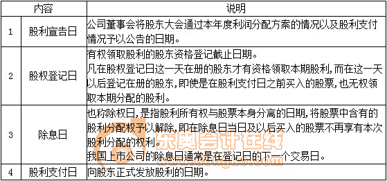 股利支付過程中的重要日期: