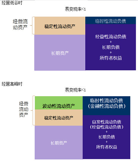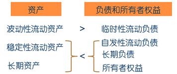 激進型籌資政策下臨時性負(fù)債在企業(yè)全部資金來源中所占比重大于配合型籌資政策,即使在季節(jié)性低谷也可能存在臨時性負(fù)債,它是一種收益性和風(fēng)險性均較高的營運資本籌資政策。