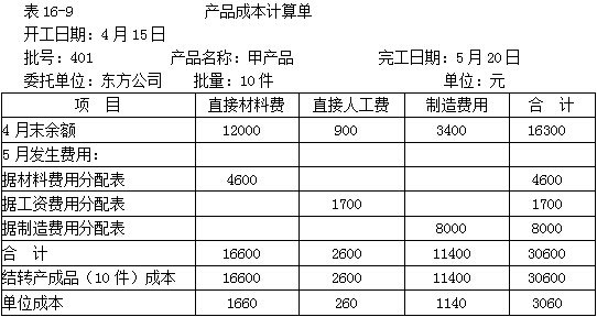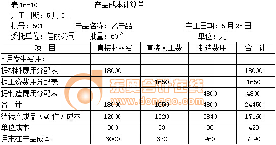 將各項(xiàng)費(fèi)用分配結(jié)果記入501批乙產(chǎn)品成本計(jì)算單(表16-10)即可計(jì)算出乙產(chǎn)品的產(chǎn)成品成本和月末在產(chǎn)品成本。
