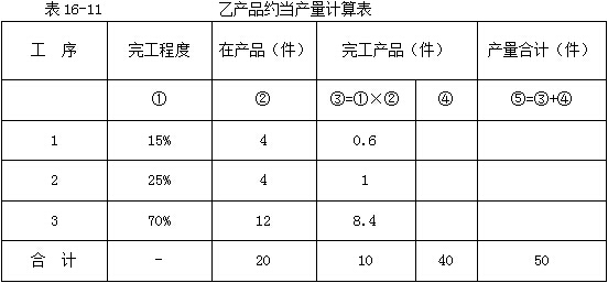 (1)計(jì)算501批乙產(chǎn)品在產(chǎn)品約當(dāng)產(chǎn)量,如表16-11。