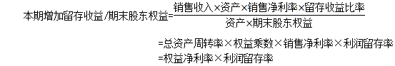 可持續(xù)增長(zhǎng)率=銷售凈利率×總資產(chǎn)周轉(zhuǎn)率×期初權(quán)益期末總資產(chǎn)乘數(shù)×收益留存率
