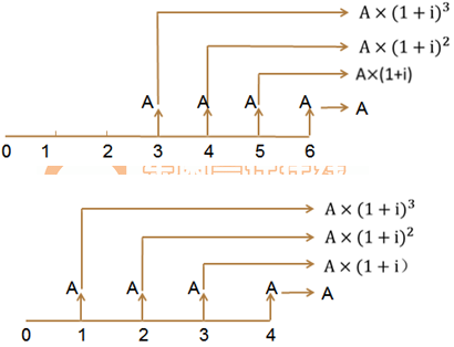 遞延年金現(xiàn)值P=A×(P/A,i,n)×(P/F,i,m)