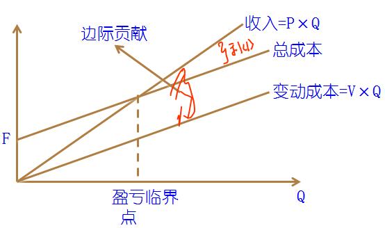 利潤(rùn)=單價(jià)×銷量-單位變動(dòng)成本×銷量-固定成本 =P×Q-V×Q-F=(P-V)×Q-F |