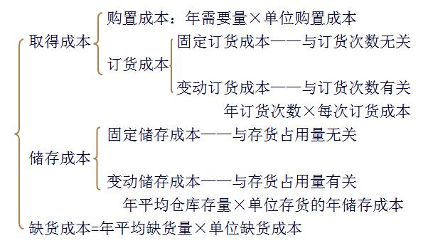 與儲備存貨有關(guān)的成本,包括取得成本、儲存成本、缺貨成本。