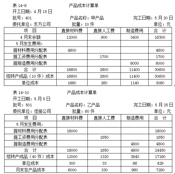 將各項(xiàng)費(fèi)用分配結(jié)果記入501批乙產(chǎn)品成本計(jì)算單(表14-10)即可計(jì)算出乙產(chǎn)品的產(chǎn)成品成本和月末在產(chǎn)品成本。