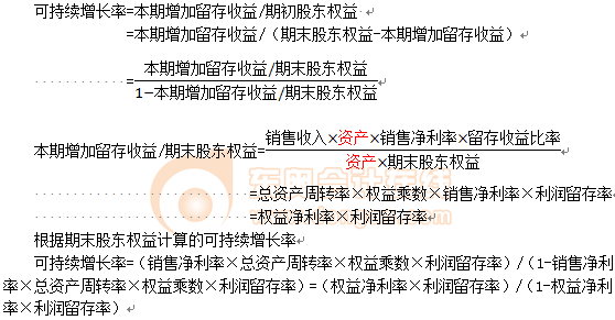 可持續(xù)增長率=銷售凈利率×總資產(chǎn)周轉率×期初權益期末總資產(chǎn)乘數(shù)×收益留存率