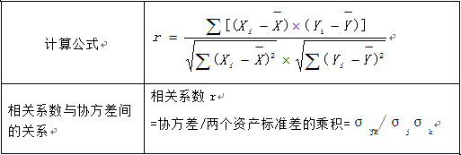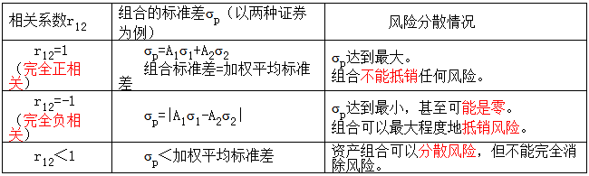【提示2】相關系數(shù)的正負與協(xié)方差的正負相同。相關系數(shù)為正值,表示兩種資產(chǎn)收益率呈同方向變化,組合抵消的風險較少;負值則意味著反方向變化,抵消的風險較多。