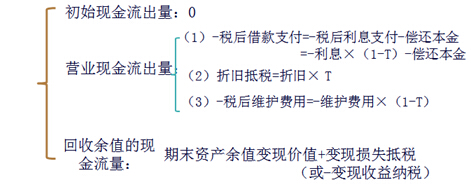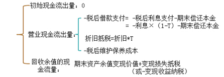 【鏈接】此處與前面第九章資本預(yù)算自行購(gòu)置設(shè)備投資的流量不矛盾,可以驗(yàn)證“稅后借款支付的現(xiàn)值=初始購(gòu)置支出”,因此如果初始流量是“-購(gòu)置支出”,營(yíng)業(yè)流量中就不能再考慮“稅后借款支付”,否則會(huì)雙重考慮流出量。