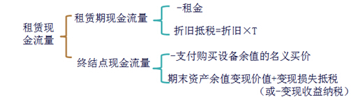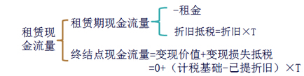 (1)承租人租賃期的現(xiàn)金流量=-稅后租金=-租金×(1-所得稅率)