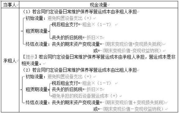 承租人現(xiàn)金流量(租賃相比自行購買的差量凈現(xiàn)金流量)
