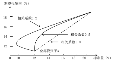 證券報(bào)酬率之間的相關(guān)系數(shù)越小,機(jī)會(huì)集曲線就越彎曲,風(fēng)險(xiǎn)分散化效應(yīng)也就越強(qiáng)