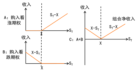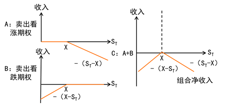 是同時(shí)出售一只股票的看漲期權(quán)和看跌期權(quán),它們的執(zhí)行價(jià)格、到期日都相同。