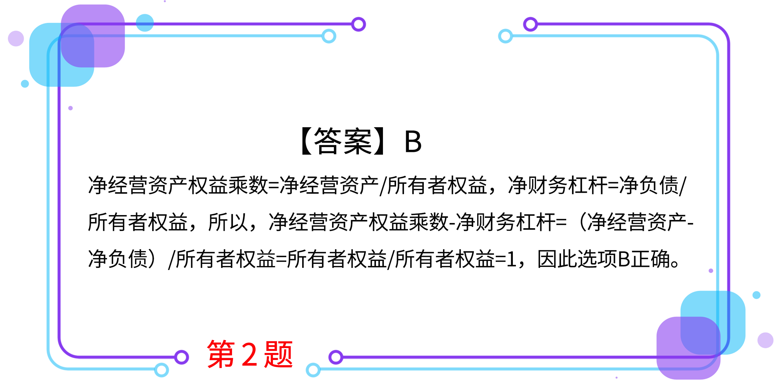 D.凈經(jīng)營(yíng)資產(chǎn)權(quán)益乘數(shù)/凈財(cái)務(wù)杠桿=1