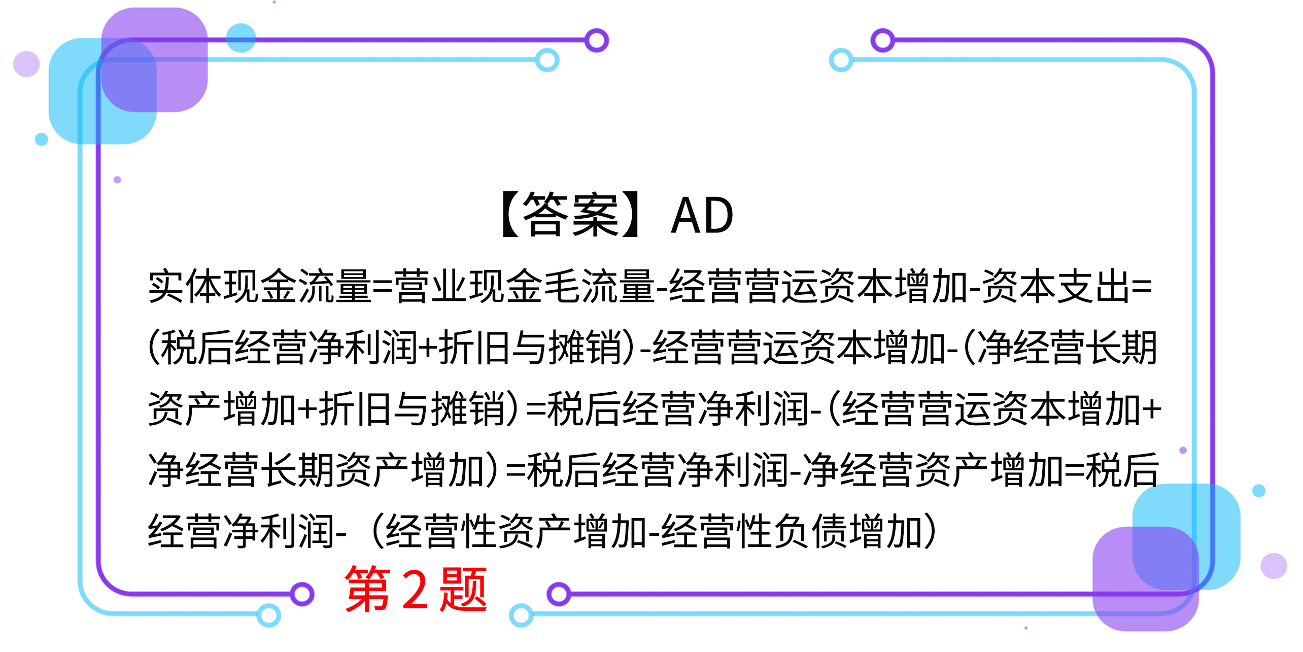 2.下列關(guān)于實體現(xiàn)金流量計算的公式中,正確的有( )。