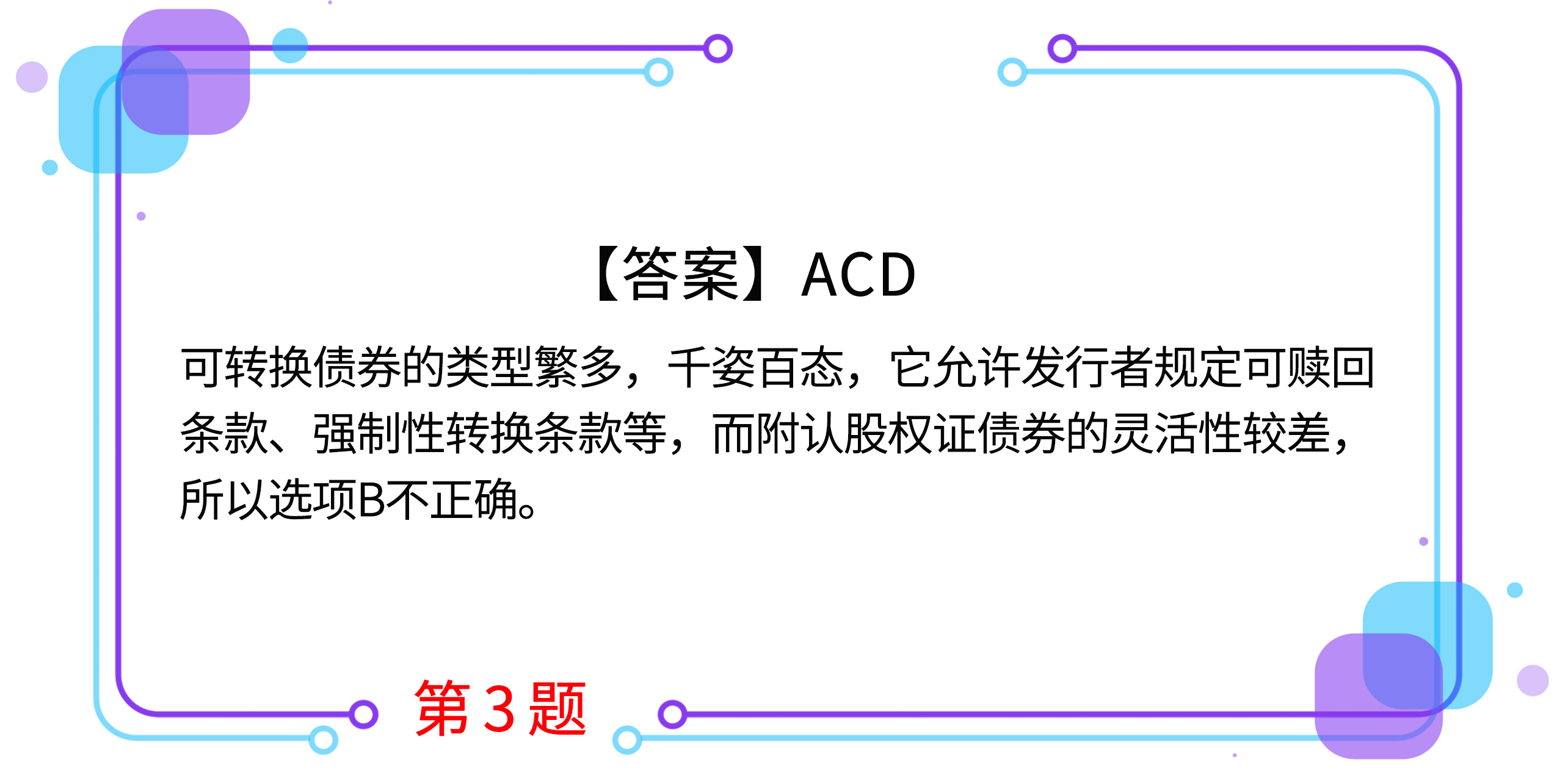 C.附認(rèn)股權(quán)證債券發(fā)行者,主要目的是發(fā)行債券而不是股票,可轉(zhuǎn)換債券的發(fā)行者主要目的是發(fā)行股票而不是債券