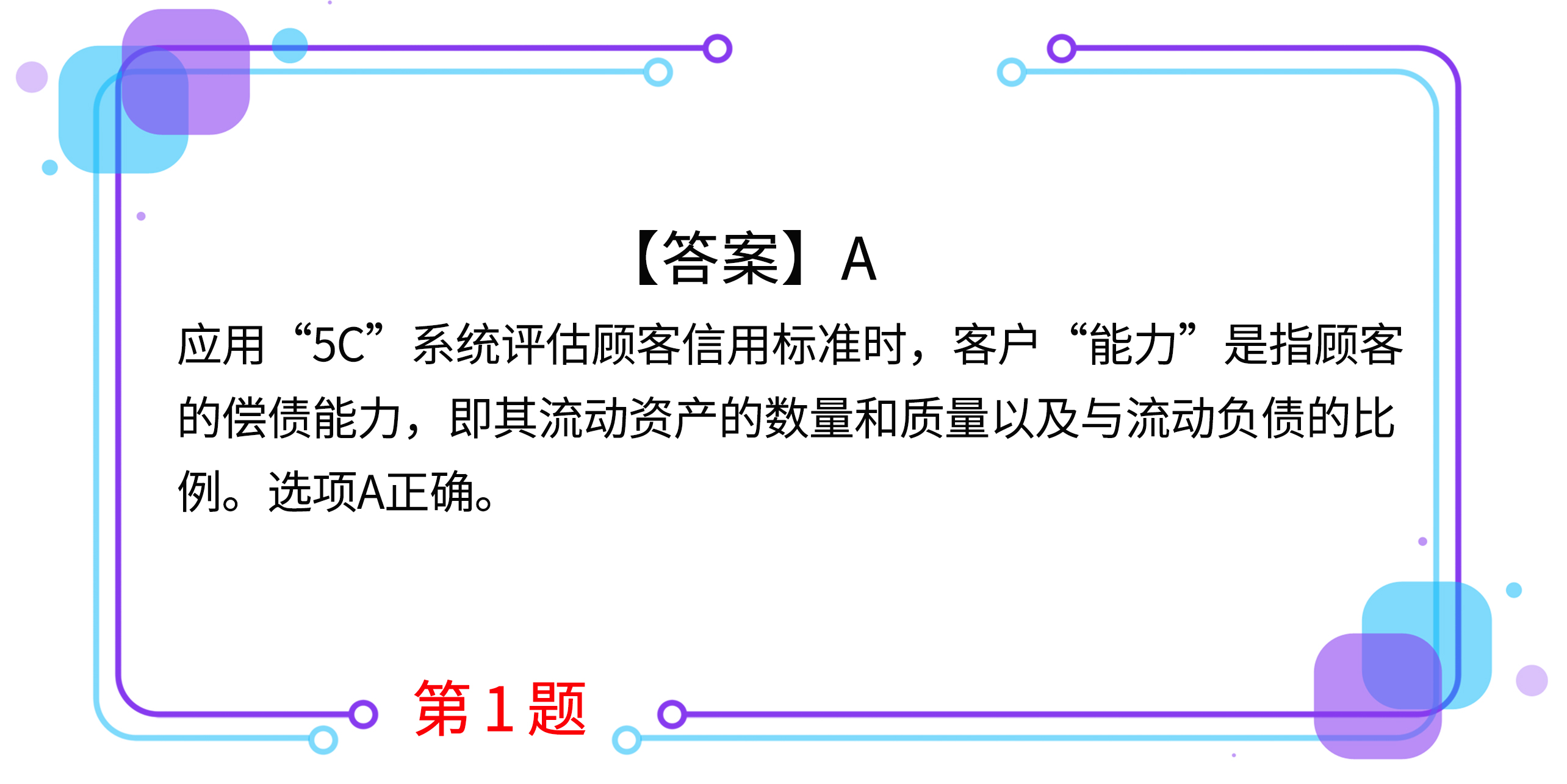 1.應(yīng)用“5C”系統(tǒng)評(píng)估顧客信用標(biāo)準(zhǔn)時(shí),客戶“能力”是指( )。(2017年第Ⅰ套)