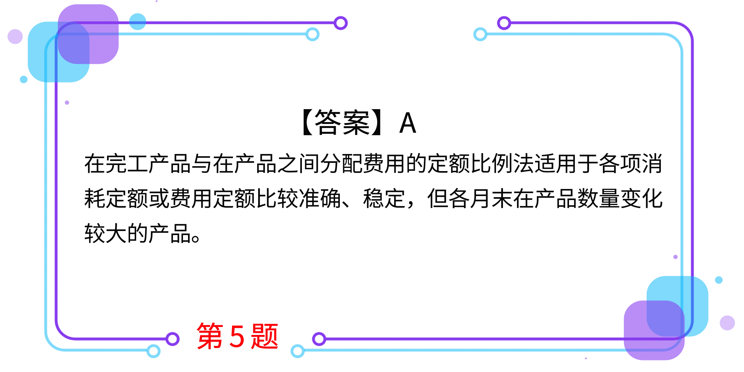 5.各項消耗定額或費用定額比較準確、穩(wěn)定,但各月末在產品數(shù)量變化較大的產品,在完工產品與在產品之間分配費用時,適宜采用(  )。