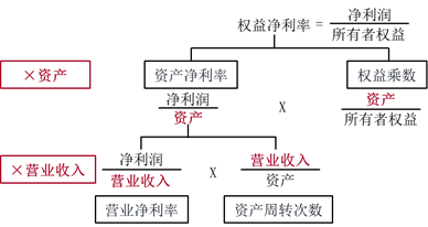 權(quán)益凈利率=營(yíng)業(yè)凈利率×資產(chǎn)周轉(zhuǎn)率×權(quán)益乘數(shù)