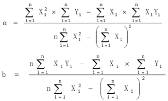 求解回歸方程y=a+bx系數(shù)的計(jì)算公式如下: