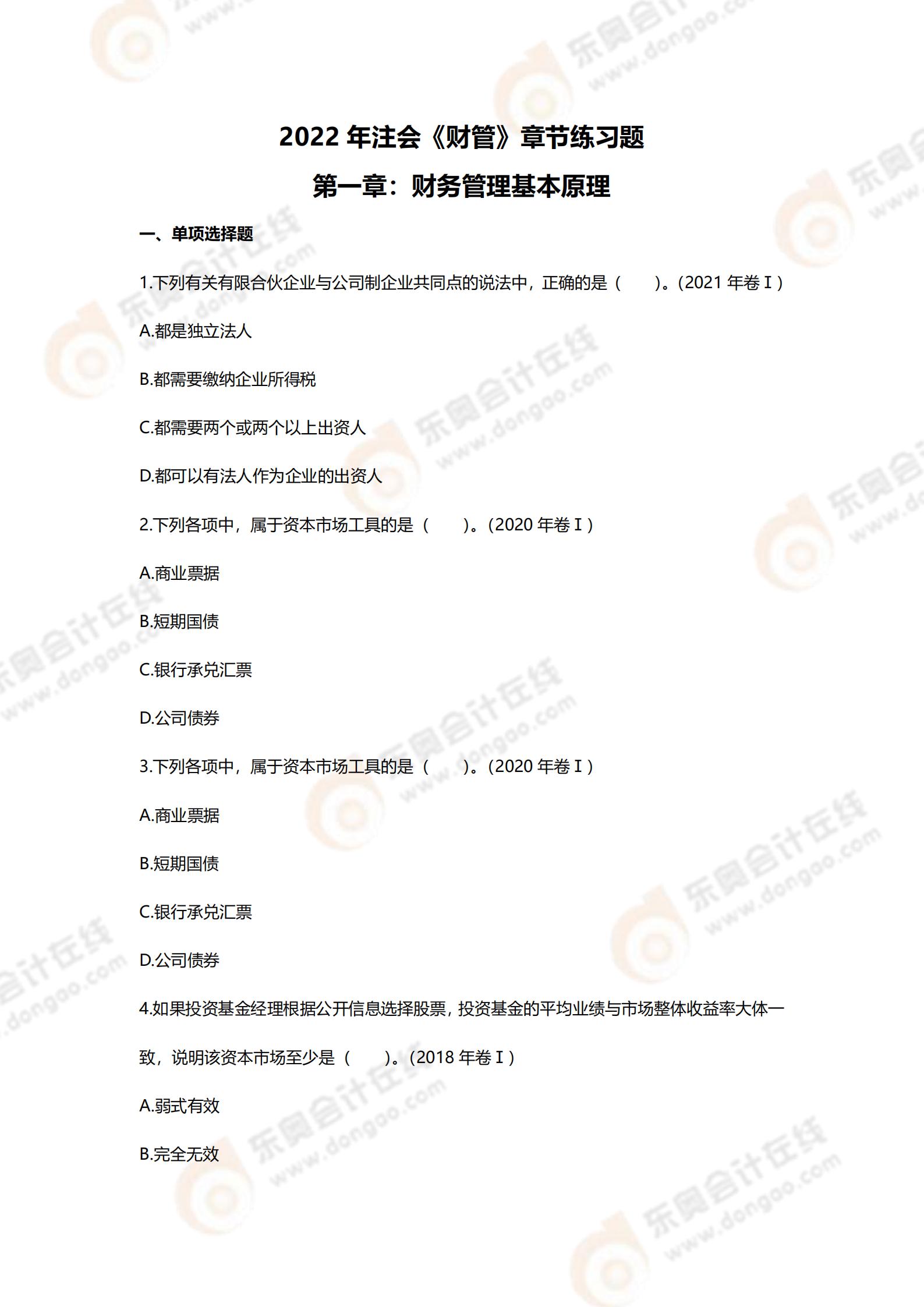 注:章節(jié)練習(xí)題出自東奧名師閆華紅老師的2022年《財(cái)管》基礎(chǔ)精講班課程講義