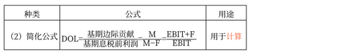 簡(jiǎn)化公式 | DOL=基期EBIT/[基期EBIT-I-PD/(1-T)] | 用于計(jì)算 |