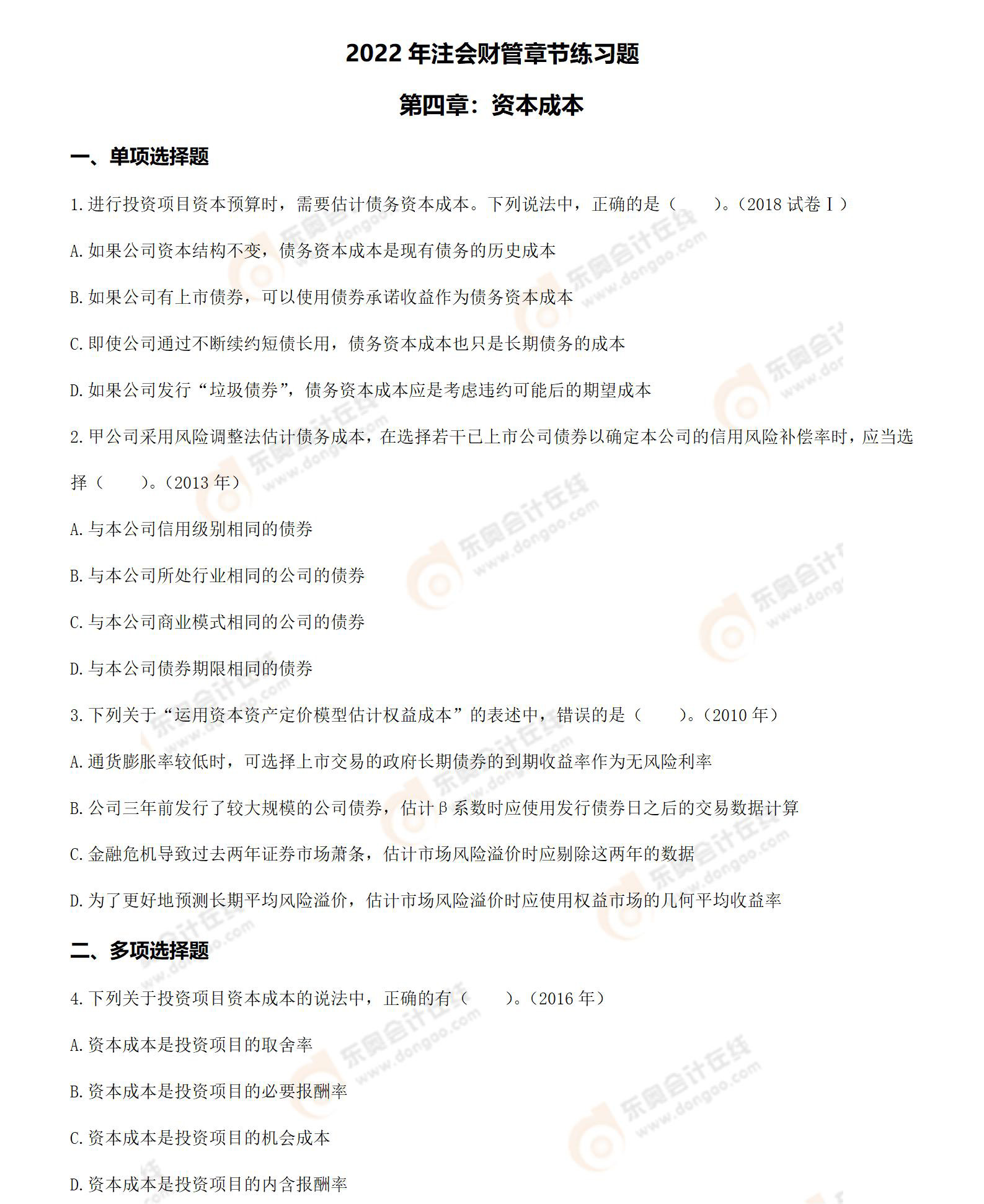 注:章節(jié)練習(xí)題出自東奧名師閆華紅老師的2022年《財(cái)管》基礎(chǔ)精講班課程講義