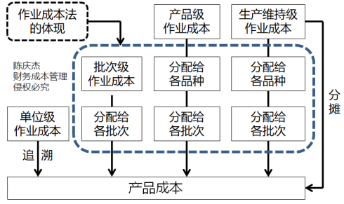 生產(chǎn)維持級作業(yè)成本 | 無法追溯到單位產(chǎn)品,并且和產(chǎn)品批次、產(chǎn)品品種無明顯關(guān)系的成本,應(yīng)首先分配到不同產(chǎn)品品種,然后再分配到成本對象(如某訂單),最后分配給單位產(chǎn)品,也可以直接依據(jù)直接人工或機(jī)器工時分配給成本對象 |