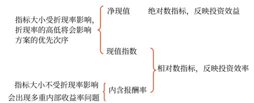指標(biāo)間的關(guān)系 | NPV>0,PVI>1,IRR>基準(zhǔn)折現(xiàn)率 | DPP< 壽命期 | PP<壽命期 | 不一定 |