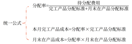 本月完工產(chǎn)品成本=分配率×完工產(chǎn)品分配標(biāo)準(zhǔn)=分配率×完工產(chǎn)品產(chǎn)量