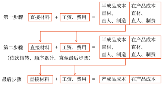 在計算各步驟成本時,不計算各步驟所產(chǎn)半成品成本,也不計算各步驟所耗上一步驟的半成品成本,而只計算本步驟發(fā)生的各項其他費用,以及這些費用中應計入產(chǎn)成品成本的份額。