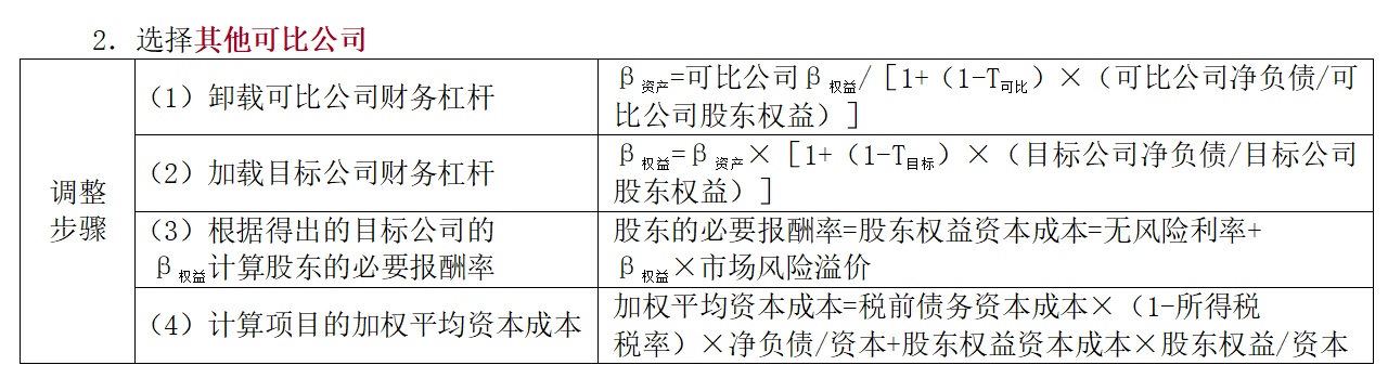 可比公司法是尋找一個經(jīng)營業(yè)務(wù)與待評價項目類似的上市公司,以該上市公司的β值作為待評價項目的β值。