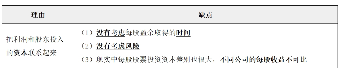 每股收益、每股股價(jià)是相對數(shù)指標(biāo),所以反映了資本和獲利之間的關(guān)系,但是由于不同公司每股投入資本不同,即每股收益和每股股價(jià)指標(biāo)是沒有考慮每股股東投入資本的數(shù)額。