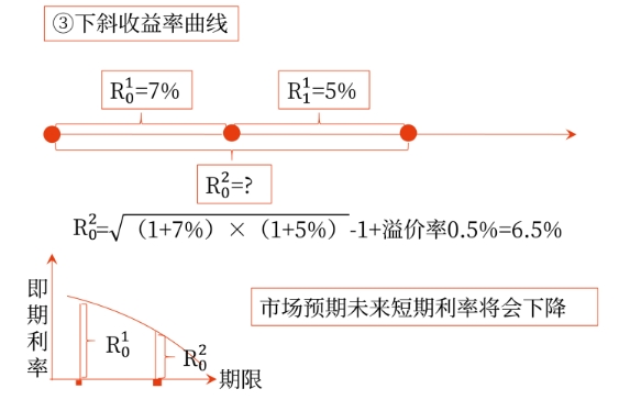 下斜 | 短期債券市場利率>中期債券市場利率>長期債券市場利率 |