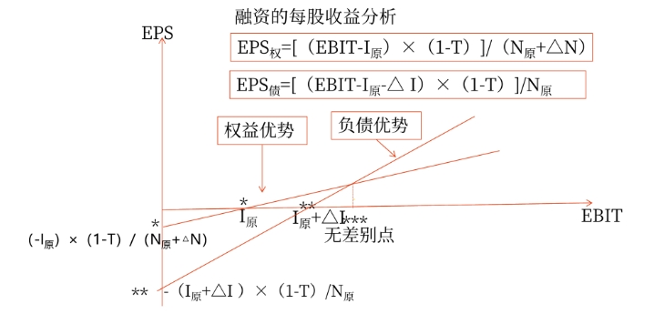 每股收益無差別點法為企業(yè)管理層解決在某一特定預(yù)期盈利水平下的融資方式選擇問題,提供了一個簡單的分析方法。這種方法側(cè)重于對不同融資方式下的每股收益進(jìn)行比較,沒有考慮各融資方式給公司帶來的財務(wù)風(fēng)險。