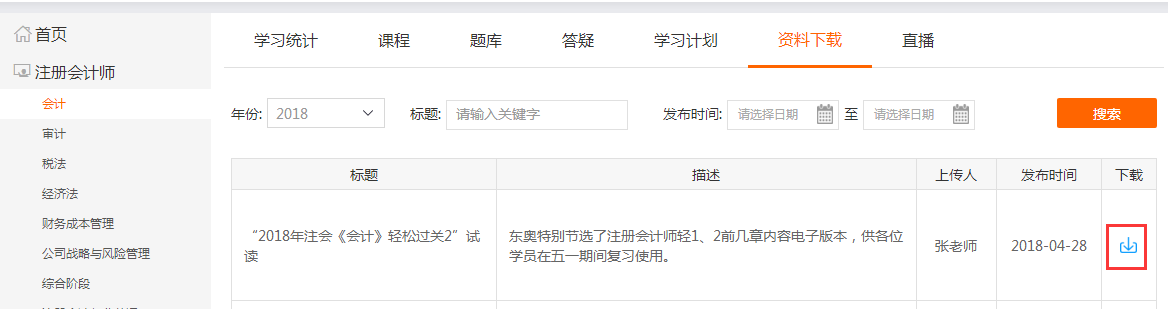 ②選擇對(duì)應(yīng)的“考種”“科目”,進(jìn)入“資料下載”欄目。