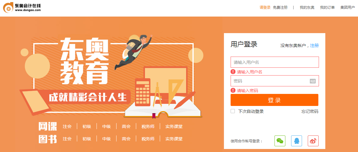 ①在官網(wǎng)下單后,直接輸入賬號(hào)密碼,進(jìn)入東奧“學(xué)員中心”。