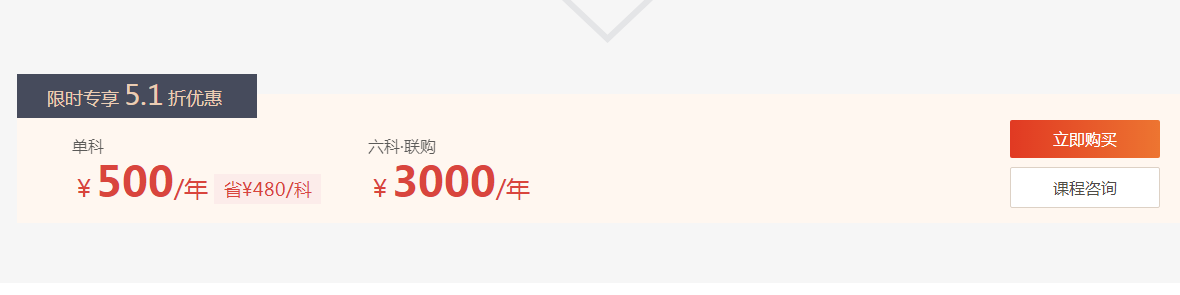 逆襲速成班單科售價為980元/年,六科聯(lián)購價為5880元/年。東奧為了回饋廣大學員,特推出優(yōu)惠活動。即日起,立享逆襲速成班享受5.1折優(yōu)惠,單科僅售500/年,六科聯(lián)購僅售3000元/年。立享優(yōu)惠>>>