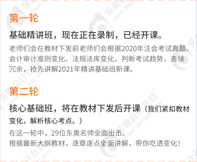 對于備考注會過程中的時間緊、難度大、科目多等問題,東奧“雙輪基礎(chǔ)班”,專為考生通關(guān)而打造,幫助考生搶占時間,穩(wěn)贏2021!