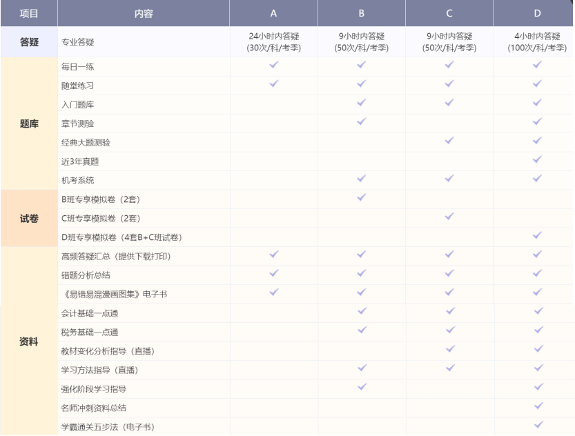除此之外,D班課程贈送包括章節(jié)測驗、3年真題、機(jī)考系統(tǒng)在內(nèi)的七類題庫,五大專享模擬試卷以及十種配套學(xué)習(xí)資料,全方位地助力學(xué)員知識水平的提升。
