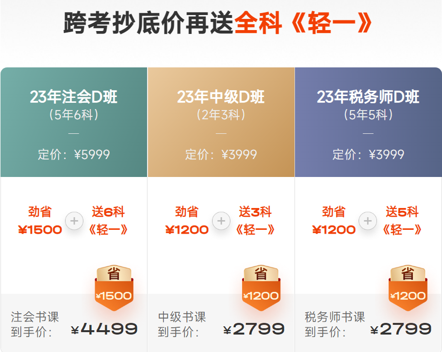 在2021年5月10日-2022年9月30日期間,購買了初級(jí)22、23考季《輕一》及組合的東奧初級(jí)學(xué)員,只需再花1元錢,即可成為【東奧會(huì)員】。在購買中、注、稅三大考種的課程時(shí),可享受超低優(yōu)惠,并獲贈(zèng)對(duì)應(yīng)考種的全科《輕一》實(shí)體書!