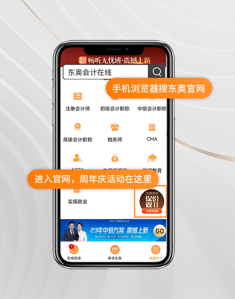 想要了解更多周年慶活動(dòng)內(nèi)容,手機(jī)端考生請(qǐng)?jiān)跒g覽器中搜索東奧官網(wǎng),進(jìn)入官網(wǎng)后點(diǎn)擊下方懸浮圖標(biāo)即可。
