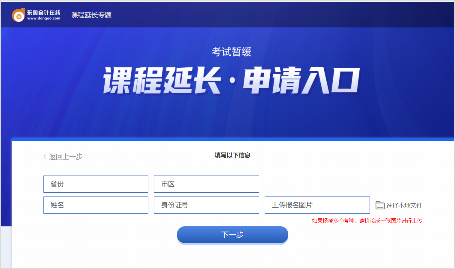 申請流程:登陸延期網(wǎng)址→選擇對應(yīng)考種入口→申請延課→填寫報(bào)考地區(qū)及個(gè)人信息→提交申請→3個(gè)工作日審核、審核成功后2個(gè)工作日開課成功(詳見下圖)
