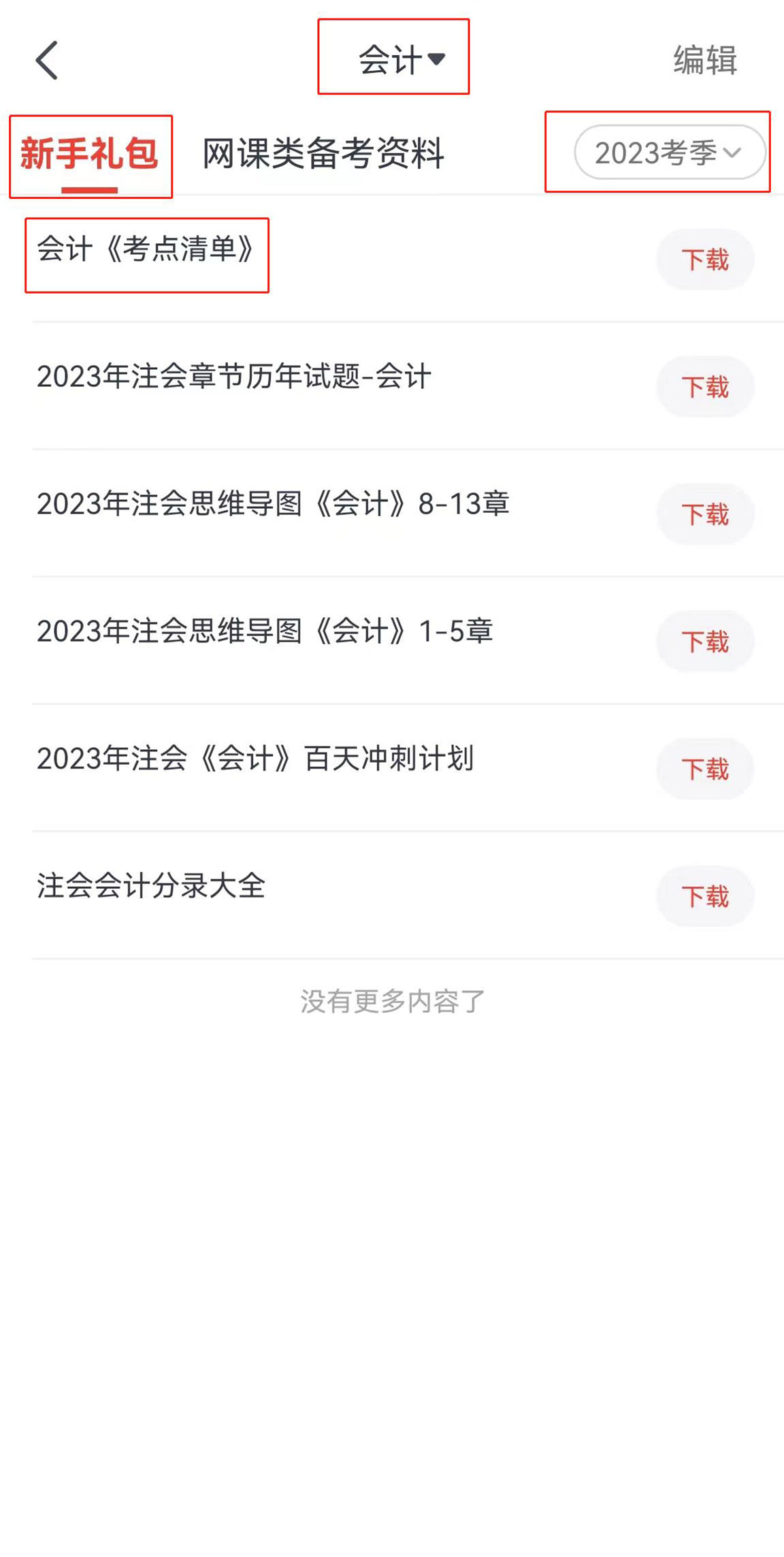 步驟三:選擇對(duì)應(yīng)科目及年份,在新手禮包下方找到“《考點(diǎn)清單》”并點(diǎn)擊下載!