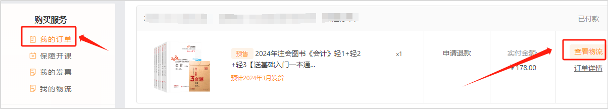 2024年注會(huì)圖書出版到貨后,會(huì)按訂單順序盡快安排郵寄,請(qǐng)您關(guān)注訂單相關(guān)物流。