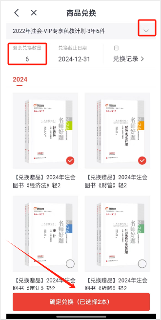 登錄【會(huì)計(jì)云課堂】APP→右下角“我的”→【我的權(quán)益】中“商品兌換”,選擇對(duì)應(yīng)商品包含的圖書,點(diǎn)擊“確定兌換”即可(點(diǎn)擊圖片查看大圖)